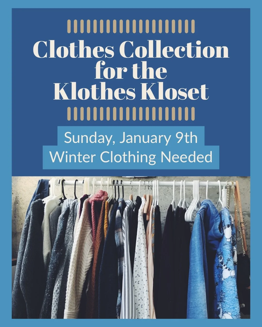 MW Klothes Kloset Collection to Resume January 9. The UMW will be collecting clothes for the United Methodist Open Door Klothes Closet on January 9 from 9-11am. Please see the car in the back row of the parking lot with its trunk open. Plan to bring your collections the second Sunday of each month moving forward.